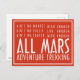 Send your friend this postcard. Get your behind to Mars and join Explore Mars All Mars Adventure Trekking. Get your space boots dirty with this All Mars Travel Agency.