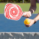 Confuse (or entrance) your opponent with this "suggestive" pickleball paddle, which features hypnotic red swirls (front ) or white swirls (rear) and up to customizable taunts. Reverse shows identical design. A great gag gift!