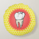 You'll love this comfy round throw pillow with a freshly pulled Molar on a red starburst. The background is a yellow polka dot pattern.