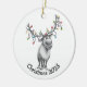 This hand-drawn ceramic ornament features a delightfully bewildered reindeer wrapped in festive string lights — a perfectly relatable mood for the holidays!