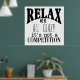 Funny poster with black text on a white background. Text says, "Relax, we're all crazy. It's not a competition." Great for dorm rooms, bedrooms, or even your office. Contact us for matching products.