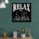 Funny poster with white text on a black background. Text says, "Relax, we're all crazy. It's not a competition." Great for dorm rooms, bedrooms, or even your office. Contact us for matching products.