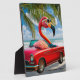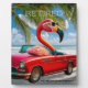 Funny Retired Flamingo in Convertible on Beach Plaque