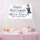 Funny Retirement Party Police Officer Sign for a Retirement Party Celebration. Honour a Police Officer, Sheriff, or any Law Enforcement person, with this Funny Retirement Party Hanging Banner with their Name. Designed with a caricature Police Officer, the text includes: Happy Retirement, Their Name and a Tag Line - Sample text shows: Thank You for 30 Years of Service! All in blue text on a white background with blue coloured stars. To personalize this banner, simply insert your details into our easy template, replacing the sample text. Be sure to view the matching Funny Retirement Party, Police Officer Retirement Card.