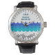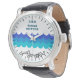 Elegant and also fun retirement watch to personalize with a date and the retired person's initials. The numbers have fallen in a jumble at the bottom of the dial as you don't really need to worry about the time much after you retire. There is also an image of sea / ocean waves on the dial for people who love the beach and possibly are moving near one. You can leave it as is, delete it, or change it with one of your own.