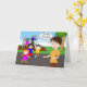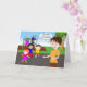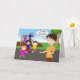 Drôle carte de voeux papier pour enseignant à la retraite. Image d'une enseignante à la retraite sur l'aire de jeux avec des enfants malheureux se dirigeant vers elle. Copyright © Shoaff Ballanger Studios.