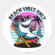 Funny Retro Beach Vibes Only Shark Classic Round Sticker