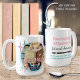 I was originally happy about my purchase and Nana loved the gift. HOWEVER, the description specifically says that these are microwave and dishwasher safe, BUT the first time Nana put this mug in the dishwasher it was destroyed. Not impressed..