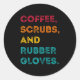 Funny Retro Coffee Scrubs Rubber Gloves Nurse Doct Classic Round Sticker