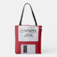Funny retro computer geek all over tote bag with image of a old computer floppy disc in a throwback to the days of simpler computers. Replace the words computer geek with your own message if you want to customize this online. A great gag gift novelty tote bag.
