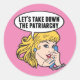 Let's Take Down the Patriarchy pink sticker. Cute retro pop art feminism design for a strong pro choice woman voting for female leadership in our country. Stand up for women's rights and female empowerment with this cool political humour cartoon that features a pretty blonde leader planning a women's march on a vintage telephone with a funny quote in a talk bubble.