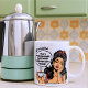 This personalized coffee mug is for mornings that require backup. It features a retro cartoon woman with a red bow and a steaming cup of coffee. Her bold declaration: “I don’t rise and shine. I caffeinate and hope for the best.” Click "Personalize this Template" to add your name and let the mug deliver the message—so you don’t have to.