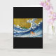 Funny Retro Vintage Surfing Wave Cavalier Spaniel Card