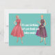 Funny retro themed design features two 1950s women on retro blue background with white "It's your birthday. Let's get drunk and judge people" customizable text.