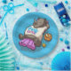 A funny rhino party animal on paper plates. Use "Personalize this template" to tweak the "Party Animal" text and create a unique, customized party accessory. Show off your party animal credentials in the office, with this mousepad featuring a rhinoceros on an inflatable mattress (or lilo). A happy cartoon rhino, enjoying the summer sun, chilling out on a bright pink inflatable in the pool. Ready to party, complete with favourite rubber duck and a refreshing drink on a floating tray.