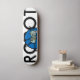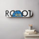 Funny cartoon style robot graphic illustration skateboard. Background text can be customized.