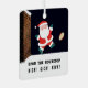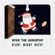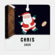 Drôle rugby cadeau de Noël ornement avec le dessin animé Père Noël sur le toit, donnant un coup de pied à une balle de rugby. Pour customiser du texte à ajouter un nom.