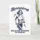 Searching for the perfect combination of running humor and a retro aesthetic? This funny running greeting card features a bold, vintage-style illustration of a determined female runner with the hilarious and dark-humor slogan, "Running Because Murder Is Wrong." It’s the ultimate way to send a laugh to the jogger or marathoner in your life who uses the pavement as their personal therapy session.