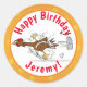 Funny running cool chicken cartoon illustration classic round sticker