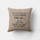 Funny rustic burlap decorator pillow with text, "I'm not really a control freak...Just let me show you how to do that."