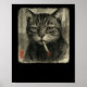 Funny Sad Cat Smoking Cigarette Meme Lover Sumi-e Poster