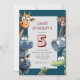 Rouler dans une fantastique célébration de 5ème anniversaire avec cette drôle d'invitation d'animaux safari! Ce design accrocheur présente une collection de créatures safari hilarantes et amicales, dont un singe branché, une girafe et un crocodile étincelant, prêt à faire la fête. Les oeuvres d'art animées et les couleurs audacieuses capteront l'attention de tous vos invités et créeront une ambiance ludique pour l'événement. C'est la façon idéale pour les amis et la famille invitations de célébrer le cinquième anniversaire de votre enfant avec style et plaisir.