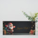 Merry Christmas greeting card, with Santa Claus with open arms on a festive decor Illustration on black background.