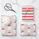 Christmas wrapping paper sheets with funny Santa Claus pattern and stripes in red and beige colours for kids winter holiday gifts.