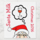 Fun full size holiday wine label done in white, with cartoon graphics of Santa's face peeking up and thinking about a glass of wine. Red text reads Santa Milk and Christmas 2016. Personalize the text to suit your holiday needs.