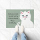 Welcome human. A humourous doormat with a moody sarcastic white cat with funny sayings. You can personalize the cat name and welcome your guests with joy and laughter. This unique and modern doormat will also make a perfect gift for cat lovers living with a slightly grumpy yet still adorable white cat. Please contact me if you want a different background colour for the mat.