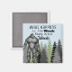 A funny magnet great for your home, camper or cabin. A forest with a Sasquatch and the message, "What happens in the Woods...Stays in the Woods"