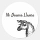 Funny Sassy No Drama Llama Drawing Black and White Classic Round Sticker