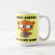 DRINK COFFEE GET STUFF DONE Cute Cat Coffee Mug. This cute and funny coffee mug bears the image of cute cartoon cat Señor Gato holding his coffee mug with the words DRINK COFFEE GET STUFF DONE. Background colour is yellow. Image is on left and right hand side of mug.