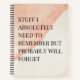 Simple lined Pink and Cream notebook for notes, to do lists, and more with a funny cover quote - Stuff I Absolutely Need to Remember But Probably Will Forget.