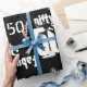 Funny Sayings 50th Birthday Black Wrapping Paper Gift Wrap for the perfect 50th Birthday Party. This paper has a bunch of funny sayings for a 50th birthday party such as: Older Than Dirt, Aged Like Fine Wine, 18 + 32 Years Experience, Over the Hill, dead in dog years, Fabulous 50, Aged to Perfection, Vintage, The Big Five Oh, Nifty 50, and of course Happy 50th Birthday.