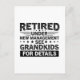 Celebrate retirement with a humourous twist in this funny sayings tee. Perfect for retired individuals enjoying their new role, this shirt highlights the playful management of grandkids. Wear it proudly and let everyone know you're retired under new management see grandkids for details