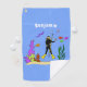 Funny scuba diver and fish sea creatures cartoon golf towel