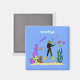 This cute design features our cartoon scuba diver surrounded by curious sea life. Bright happy aquatic fun!