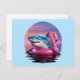 Funny Shark in Flamingo Pool Float Vaporwave Holiday Postcard