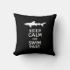 Funny Shark Warning - Keep Calm and Swim Fast Throw Pillow