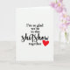 This Valentine’s Day card features a white background with a single red heart placed in the bottom right corner. Centered on the front is the message, “I’m so glad we’re in this shitshow together.” Most of the sentence appears in black serif lettering that is clear and steady, making it easy to read at a glance. The word “shitshow” is written in a hand-drawn script style, adding a personal and slightly humorous touch. With no extra artwork or distractions, the focus stays on the message and the small heart. It’s a thoughtful choice for a partner or close friend who understands life’s chaos and appreciates honesty, support, and sticking together through it all.