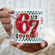 Give this funny Six Seven 67 colorful red, green, and gold retro design hot chocolate / coffee mug to kids and adults alike this Christmas! It's the perfect stocking stuffer or secret santa gift for kids, grandkids, spouse, family member, friend, or anyone on your "NICE" list this year - you can even add a baggie of your favorite hot chocolate, marshmallows, candy canes, or holiday coffee grounds! Custom design requests and template questions are always welcome - click the "message" button. Design lovingly created by Fig and Lily Studios - sending blessings and Christmas cheer!