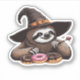 Funny Sloth in Witch Hat Enjoying Doughnuts - Cute