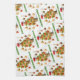 Delizioso Natale! Show off your Italian pride (or love of Italian food ... or both!) with this whimsical kitchen towel, styled in the colours of the flag of Italy and featuring a repeating pattern of AI-generated spaghetti trees decorated with basil, garlic, and meatball ornaments, topped with a red chef's hat, and surrounded by even more tasty ornaments.