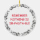 Funny food pun Christmas ornament. Funny quote, "Nothing is im-pasta-ble." Spaghetti graphics.