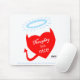Funny Split Personality Naughty Nice Cartoon Heart Mouse Pad featuring a unique heart with red devil horns and a blue angel halo makes a cute second gift or stocking stuffer for your wife or girlfriend.