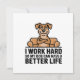 A modern minimalist dog illustration featuring a smug, relaxed dog sitting confidently on a couch, paired with the humorous phrase “I Work Hard So My Dog Can Have A Better Life.” The clean cartoon style, balanced layout, and bold typography create a strong visual impact while keeping the message easy to read. A highly relatable design for proud dog owners who love playful pet humor and simple, statement-driven artwork.