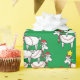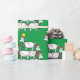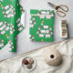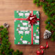 This whimsical holiday gift wrap features hand drawn goats in Santa hats stacked on  each other with a gold star on top, on green backround.