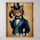 Funny Steampunk Cat In blue Jacket Poster