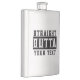 The product is a good size and came exactly as it was pictured. The lid is not attached to the flask, which could be dangerous on drunken nights... The print came out surprisingly well and looks very sharp. Would definitely recommend.